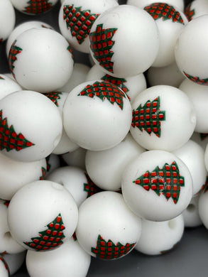 Pink Christmas Tree Pattern Silicone Beads - 15mm
