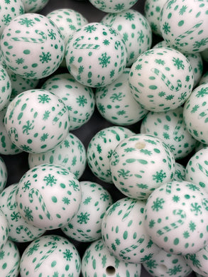 Green Candy Cane Pattern Silicone Beads - 15mm