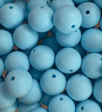 10 Light Blue Solid Round Silicone Beads - 15mm