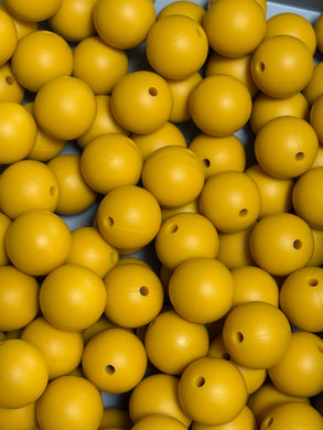 10 Mustard Yellow Solid Round Silicone Beads - 15mm