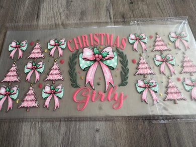 Christmas Girly UV DTF 16oz cup wrap - double sided - Permanent Decal - Ready to apply
