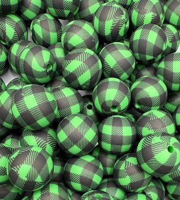 Green/Black Plaid Silicone Beads - 15mm - 10ct