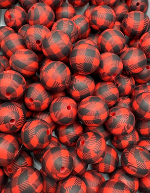 Red/Black Plaid Silicone Beads - 15mm - 10ct