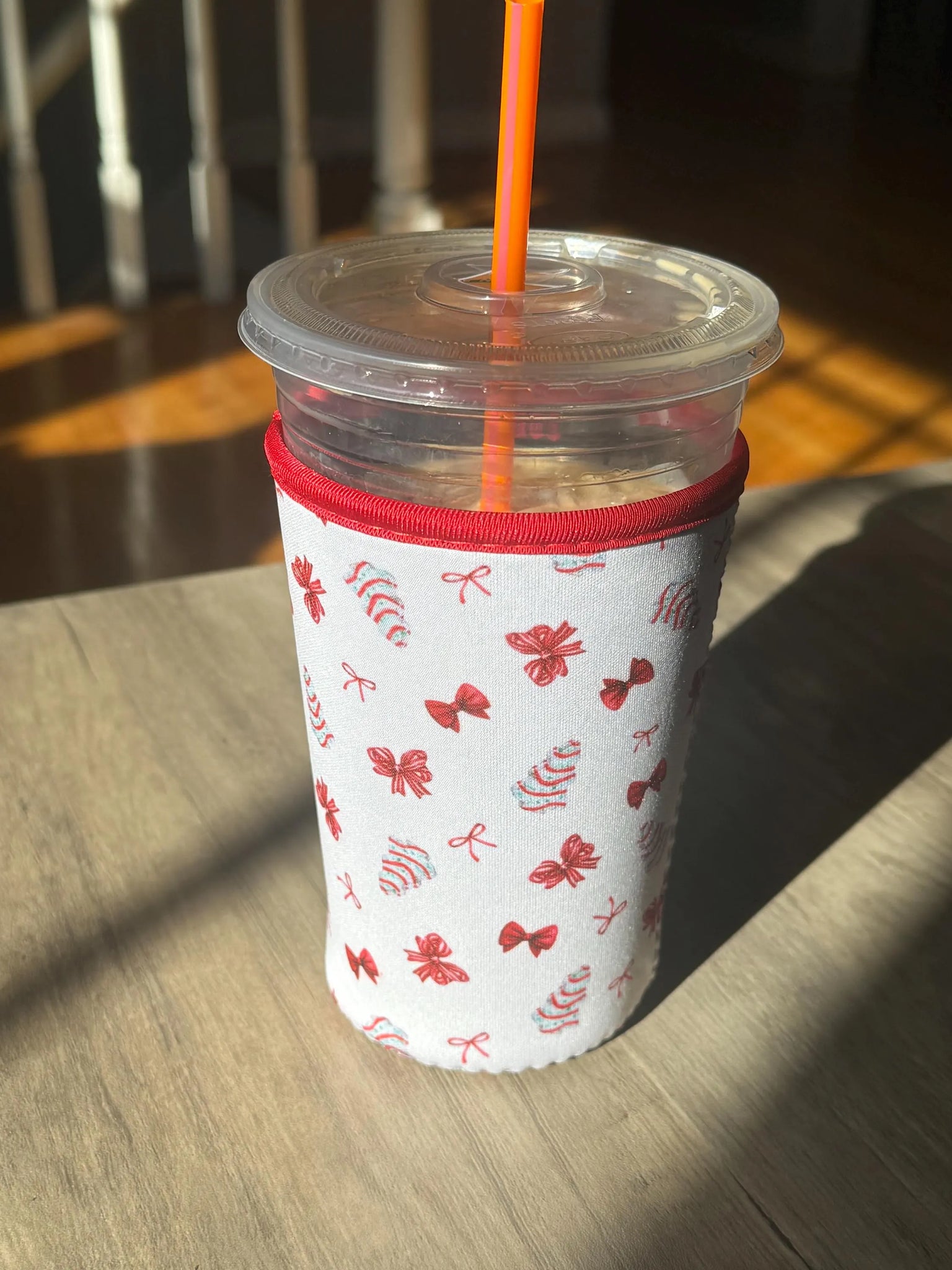 Wrap your holiday spirit around your favorite iced beverage with this charming Christmas tree and bows coffee sleeve! Designed to fit medium Dunkin' cups and Venti Starbucks drinks, it keeps your hands dry while spreading seasonal cheer. The playful festive pattern makes every sip feel like a mini celebration—because even your coffee deserves to get into the holiday mood!