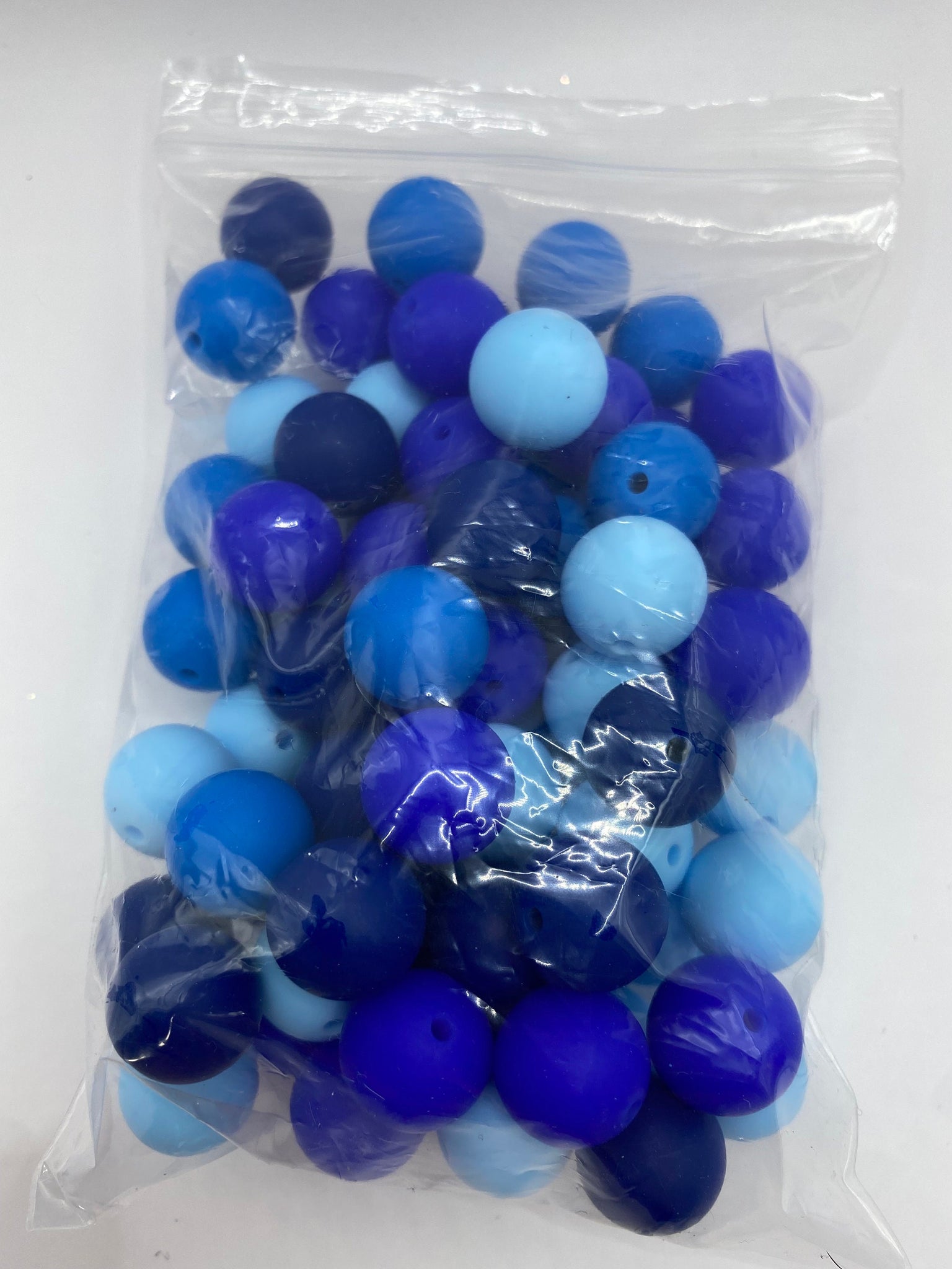 Blue Mix - Solid Round Silicone Beads - 15mm - 50 Beads