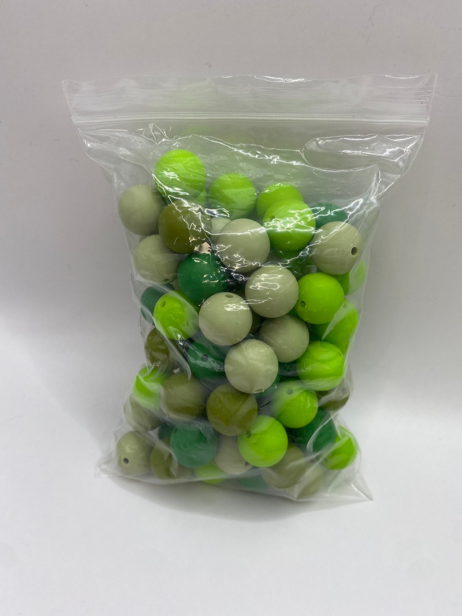 Green Mix - Solid Round Silicone Beads - 15mm - 50 Beads
