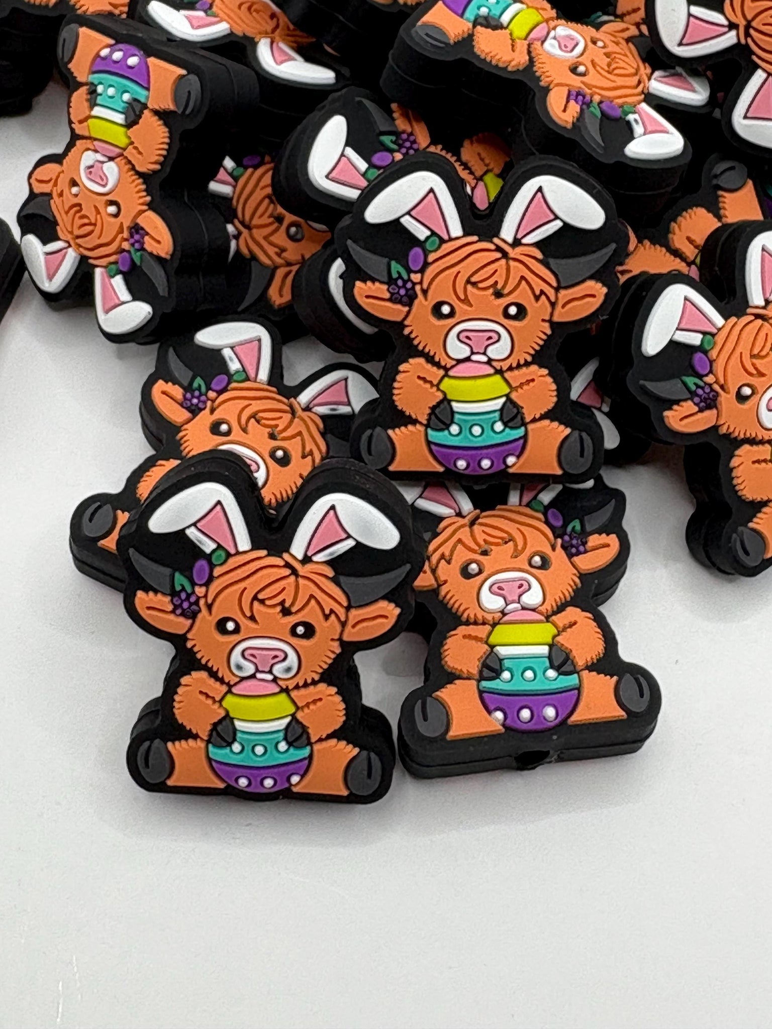 1 Easter highland cow silicone focal beadsmake keychains, wristlets, pens, cup charms etc..