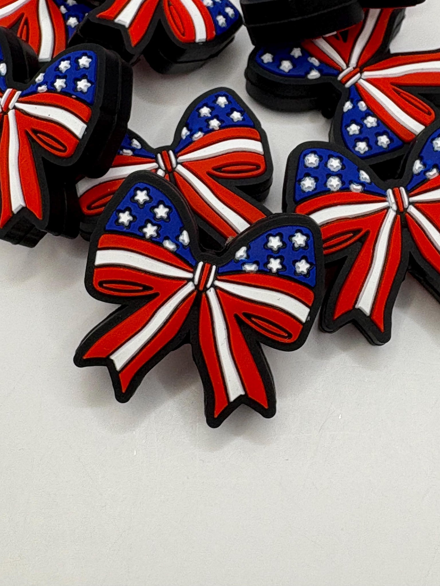1 flag bow silicone focal bead make keychains, wristlets, pens etc…