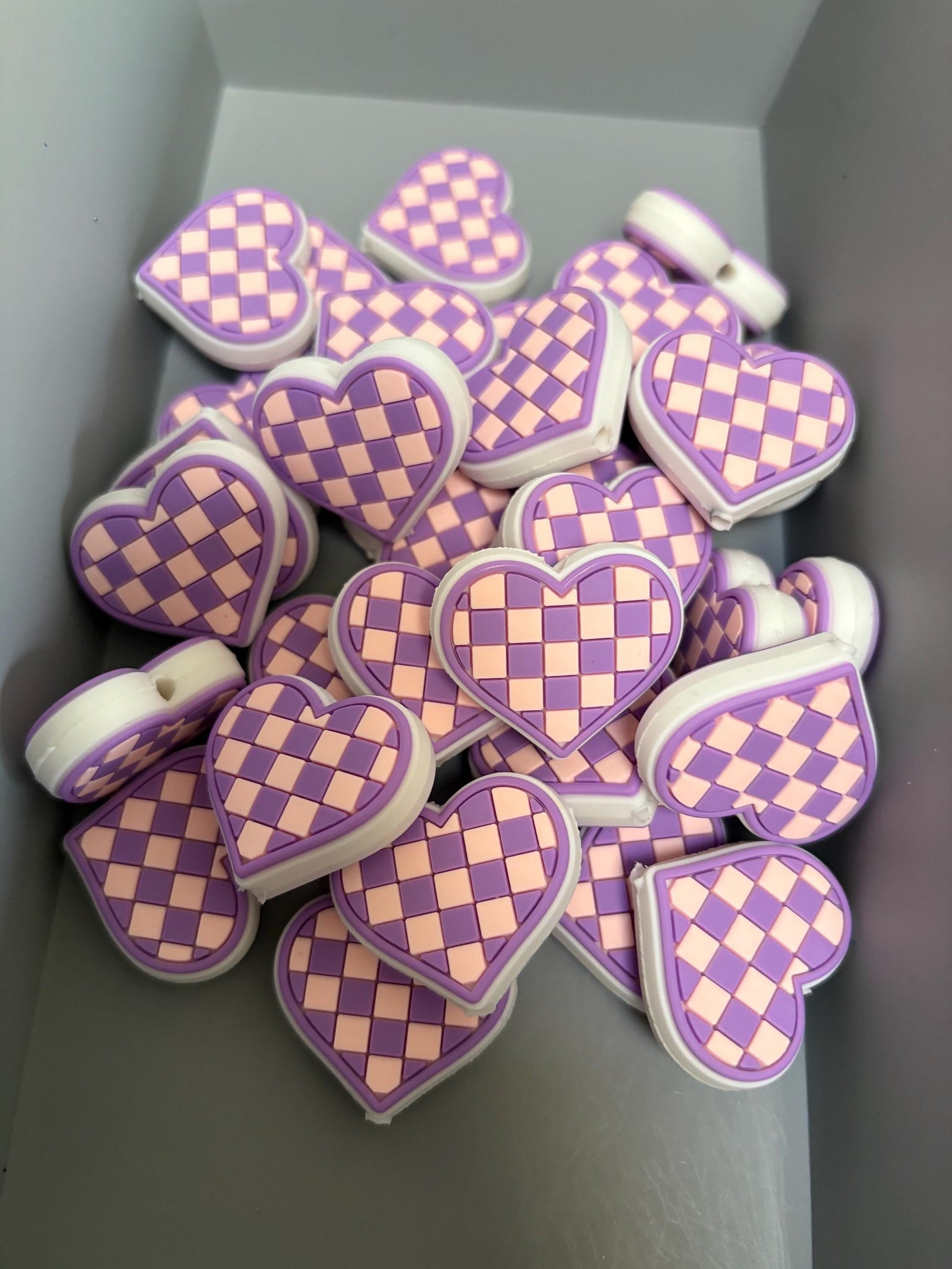purple checkered heart silicone focal bead
