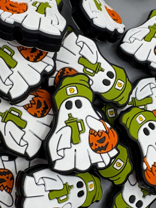 Ghost With Hat and Cup Silicone Focal Bead - Halloween Focal