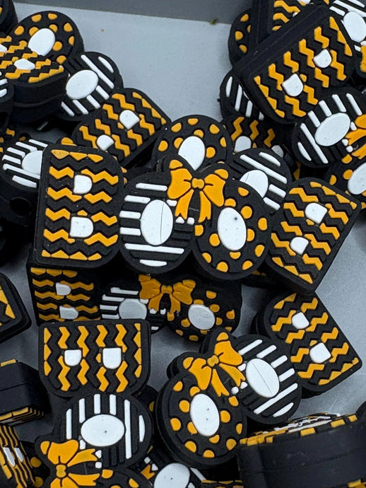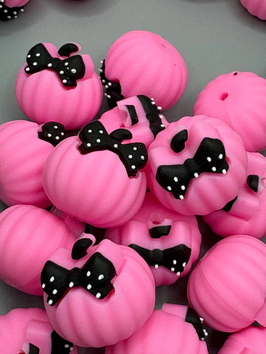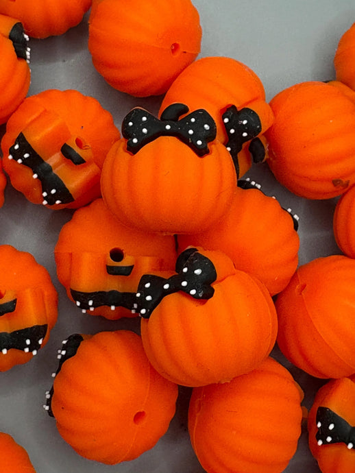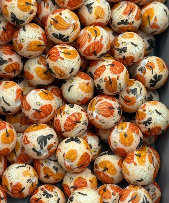 Pumpkin Bows Print Silicone Beads - 15mm 10Ct