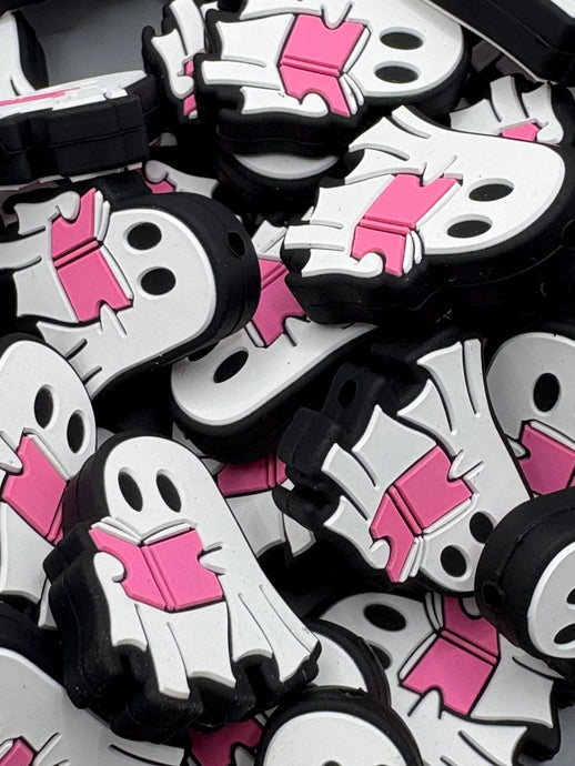 Ghost With Book Silicone Focal Bead - Halloween Focal