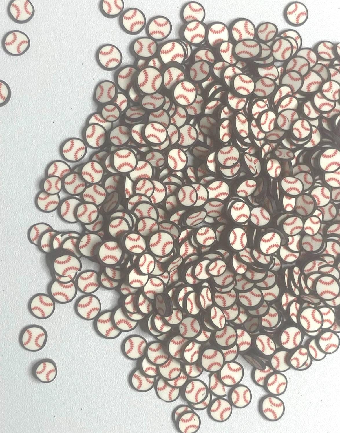 Baseball Polymer Clay Slices, 5mm. 0.5 oz bag