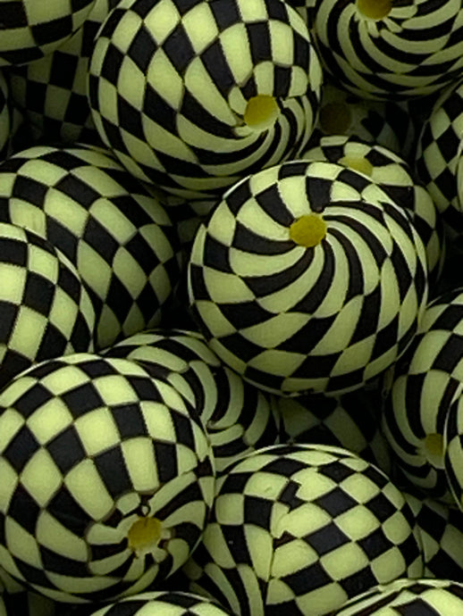 10 Yellow Checkered Print Silicone Beads - 15mm