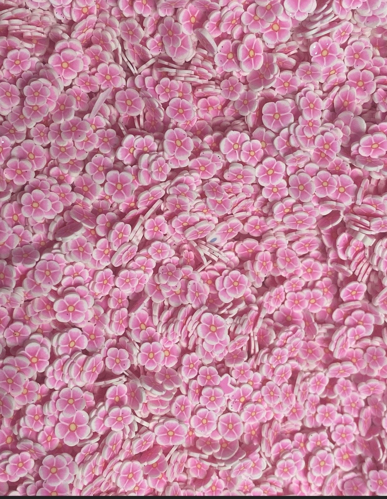 Pink Flowers Polymer Clay Slices 5mm. 0.5 oz bag